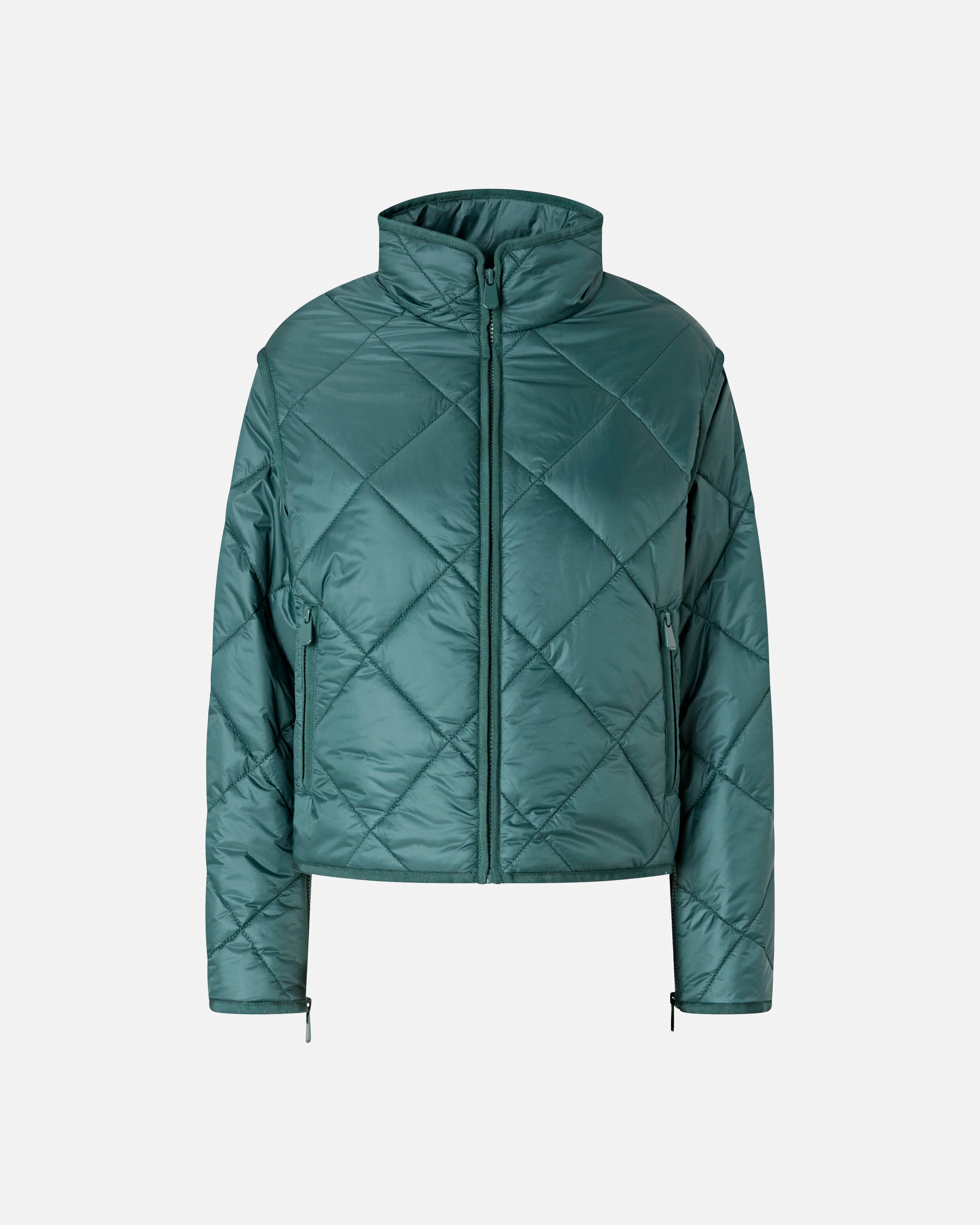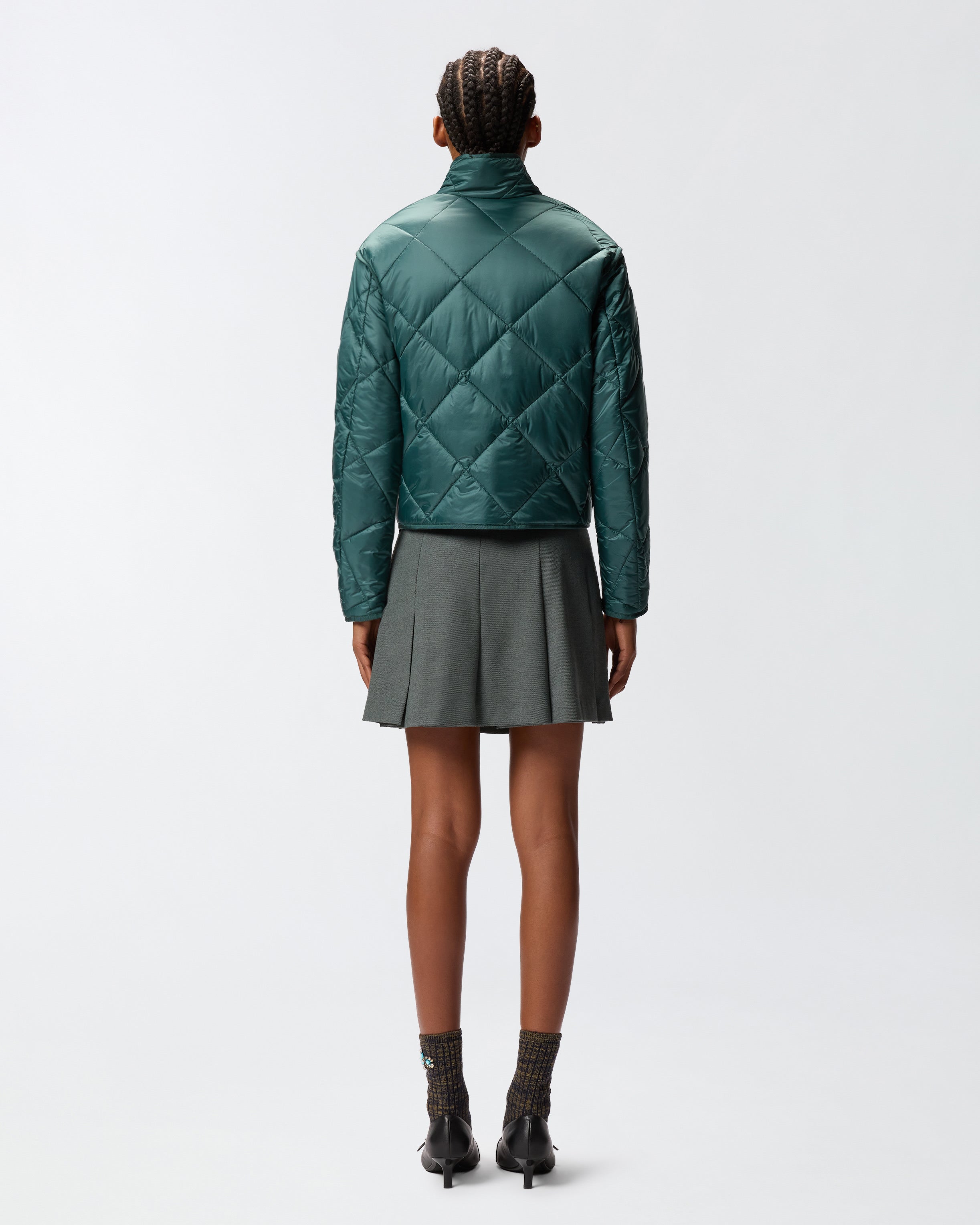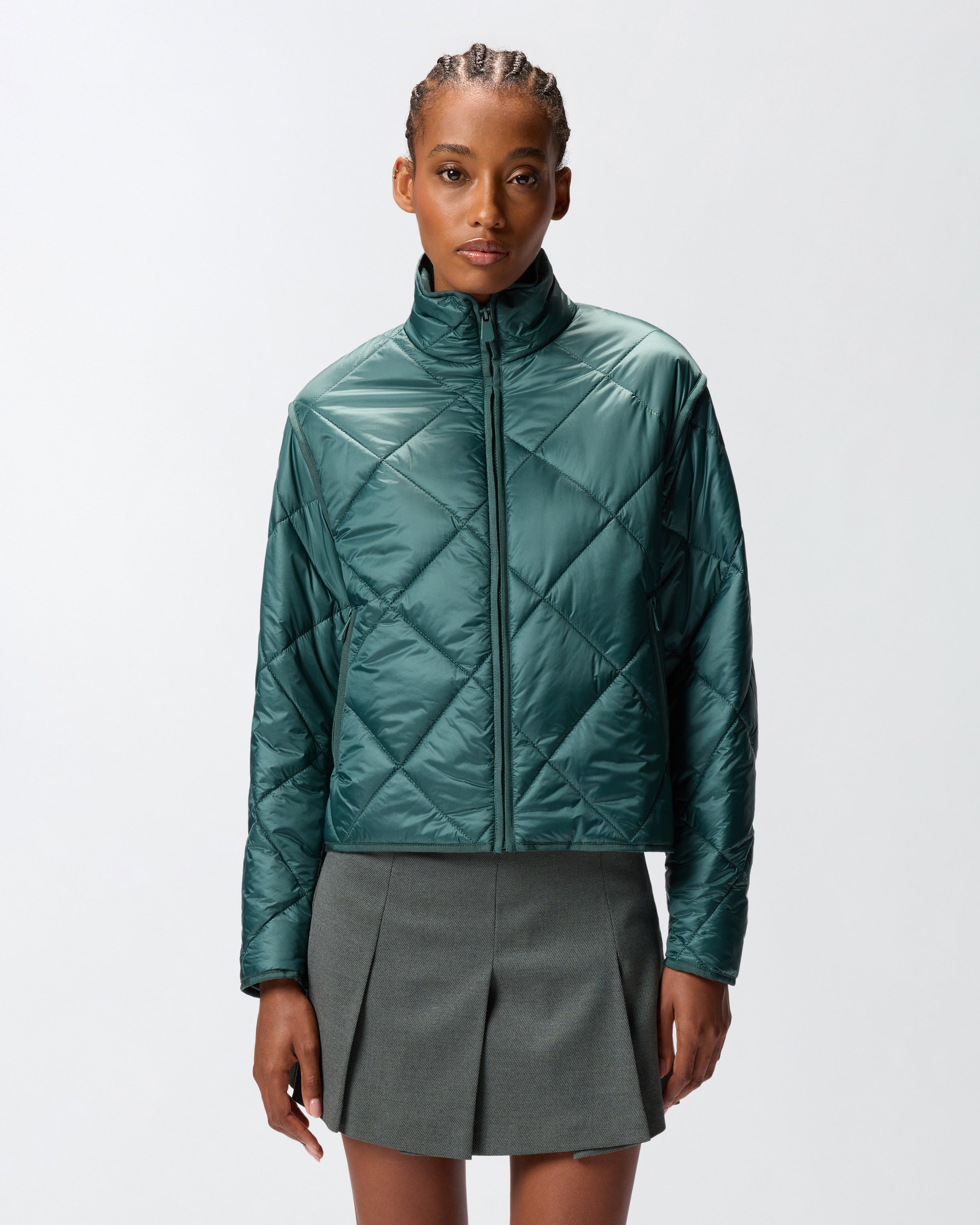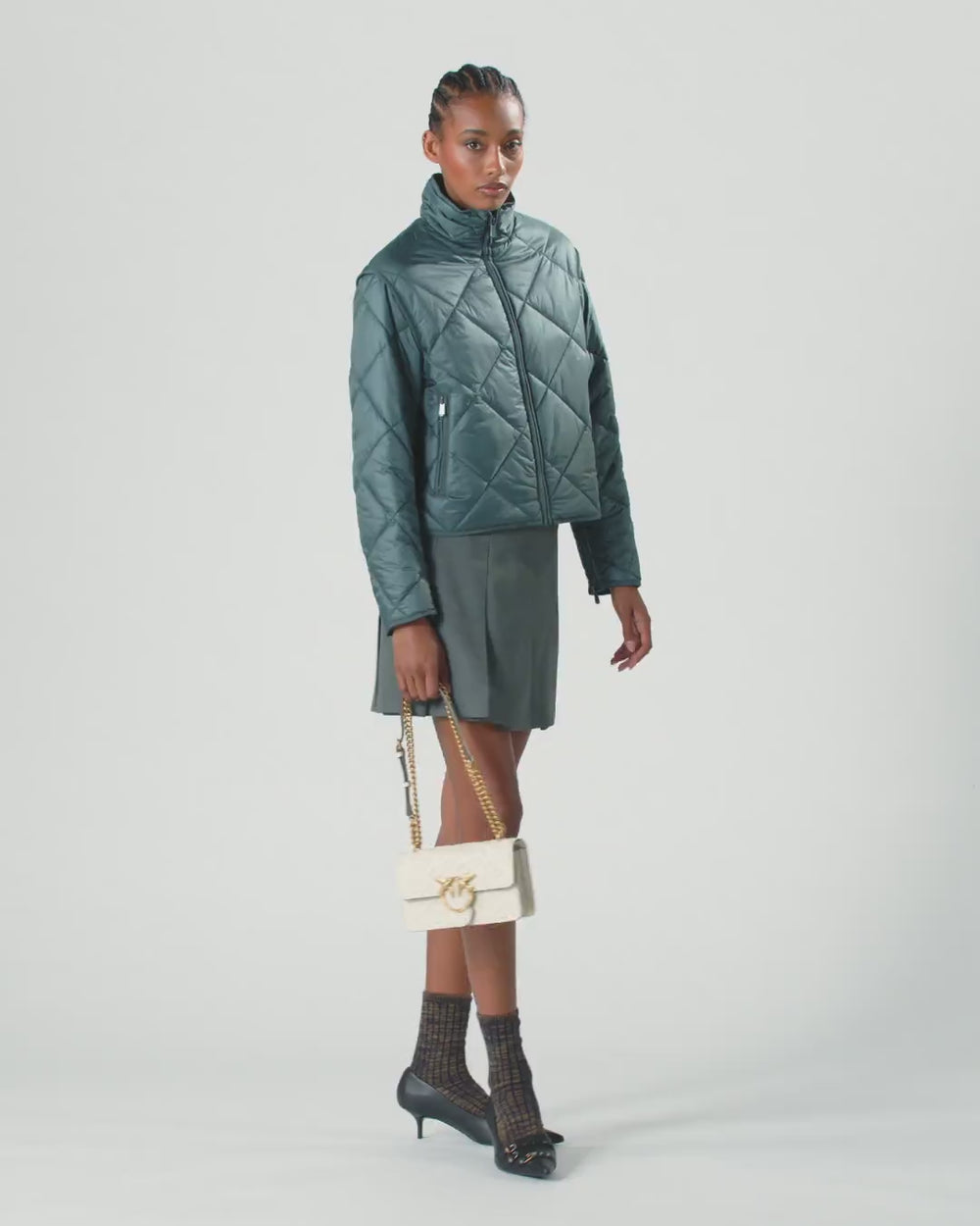 Lightly padded jacket made from technical fabric with distinctive semi-glossy finish and featuring diamond quilting and a tonal fabric trim. This style has a high neck, vertical welt pockets with zip and long sleeves with zipped cuffs so you can adjust the fit. Zip fastening on the front. Lined model. The cropped cut of the puffer jacket makes it the perfect everyday outerwear to tackle the first cold days of the season.