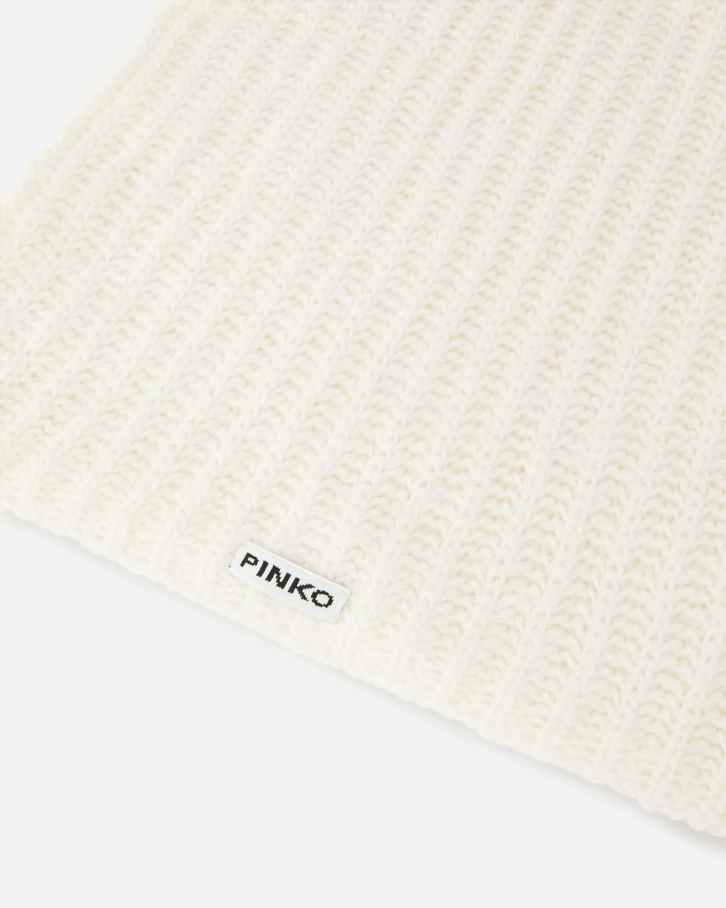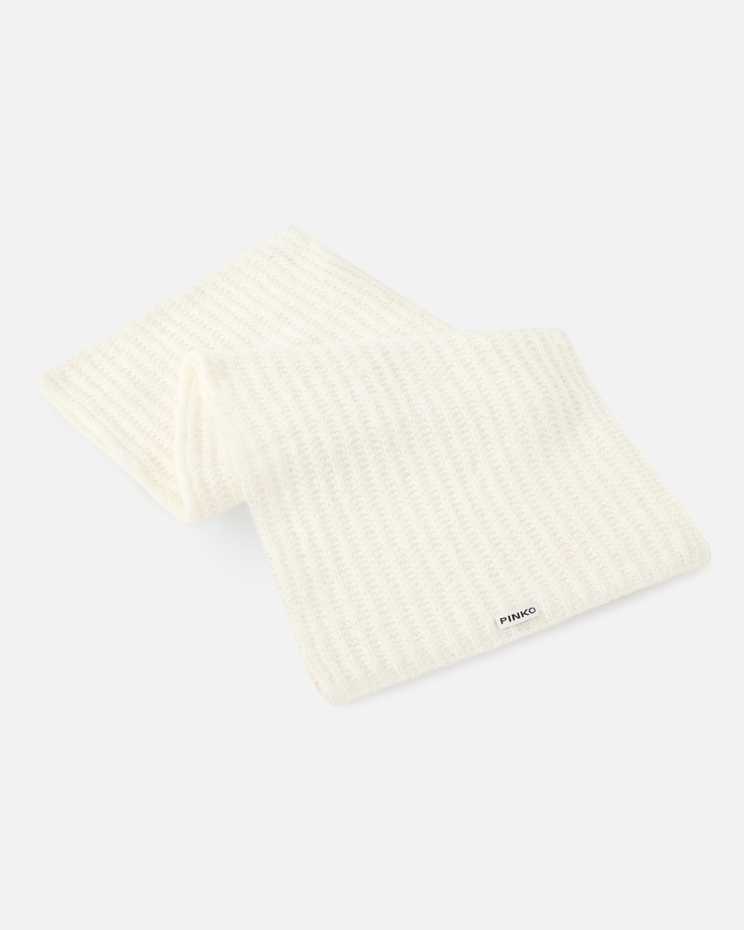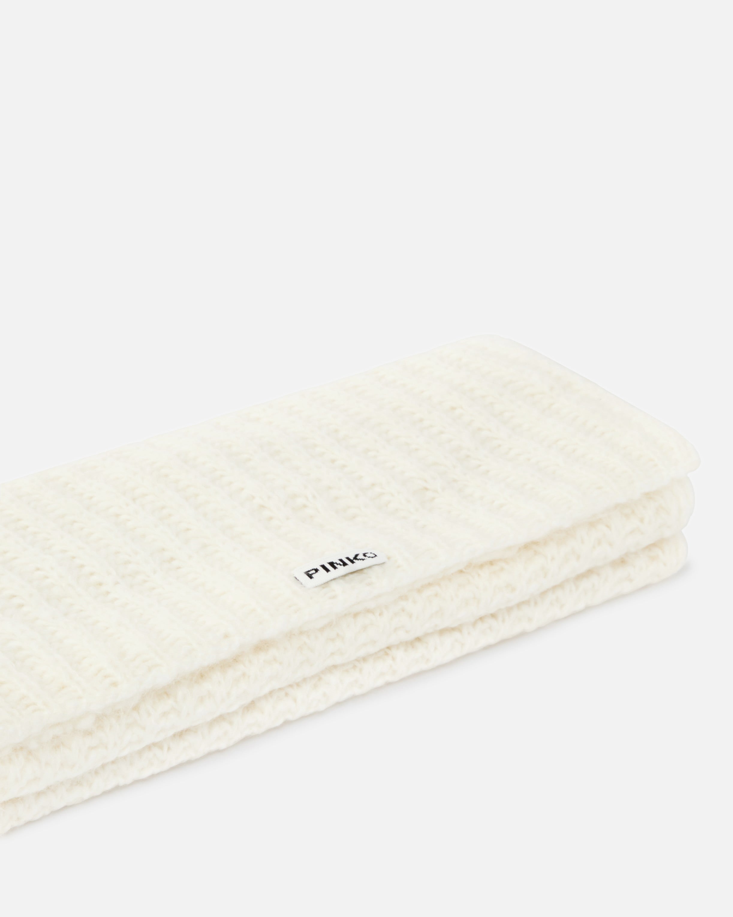 Scarf in soft, ribbed wool-blend yarn that is very soft to the touch. Customising the piece in pure PINKO style is the label with embroidered logo lettering at the end. Warm up your winter outfits with this understated yet classy accessory and complete the overall look with its matching hat.