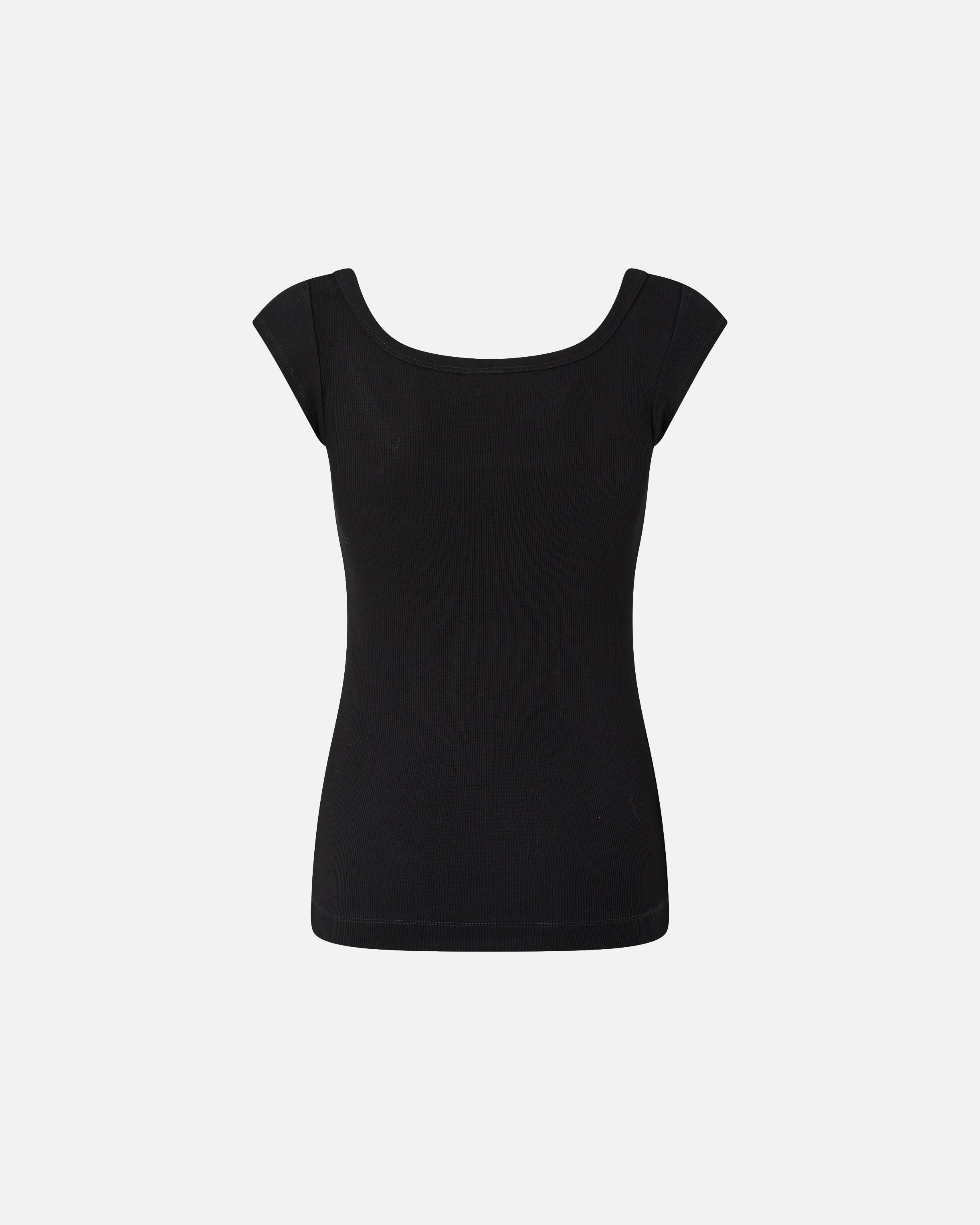 Slim-fit top in ribbed stretch cotton fabric, with a boat neck and short sleeves. The centre front features the iconic Love Birds logo in glossy raised material. Add this top to your outfit together with a pair of dark-coloured jeans and heels for a unique outfit you can wear for a special evening.
