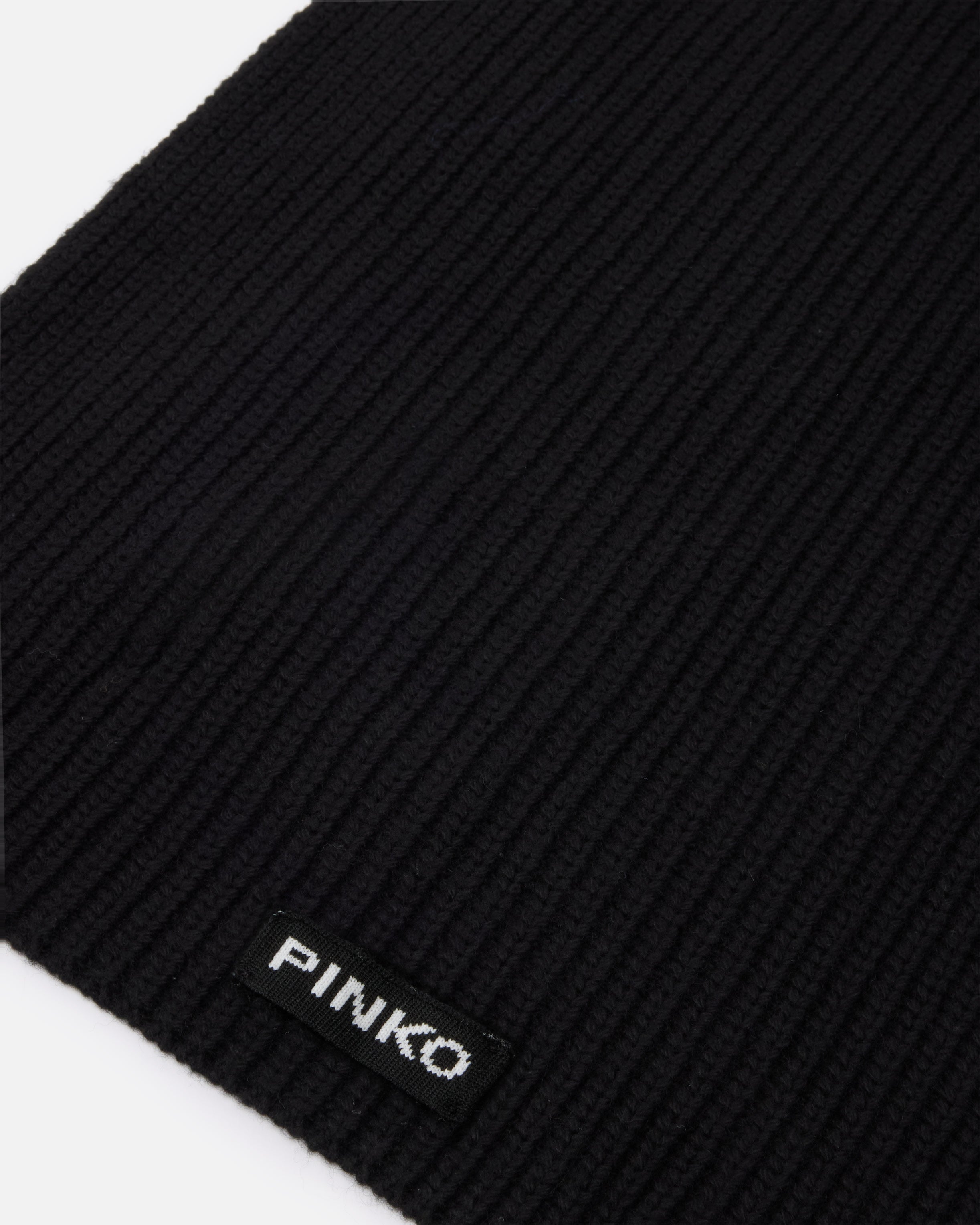 Scarf in soft wool, cashmere and viscose-blend yarn that is extremely soft to the touch. The all-over rib knit creates a three-dimensional effect. The final touch is given by the tone-on-tone label with PINKO lettering logo on the trim. Face the coldest days in full-on PINKO style with this refined winter wardrobe essential. Complete the outfit by pairing this piece with the hat from the same line.