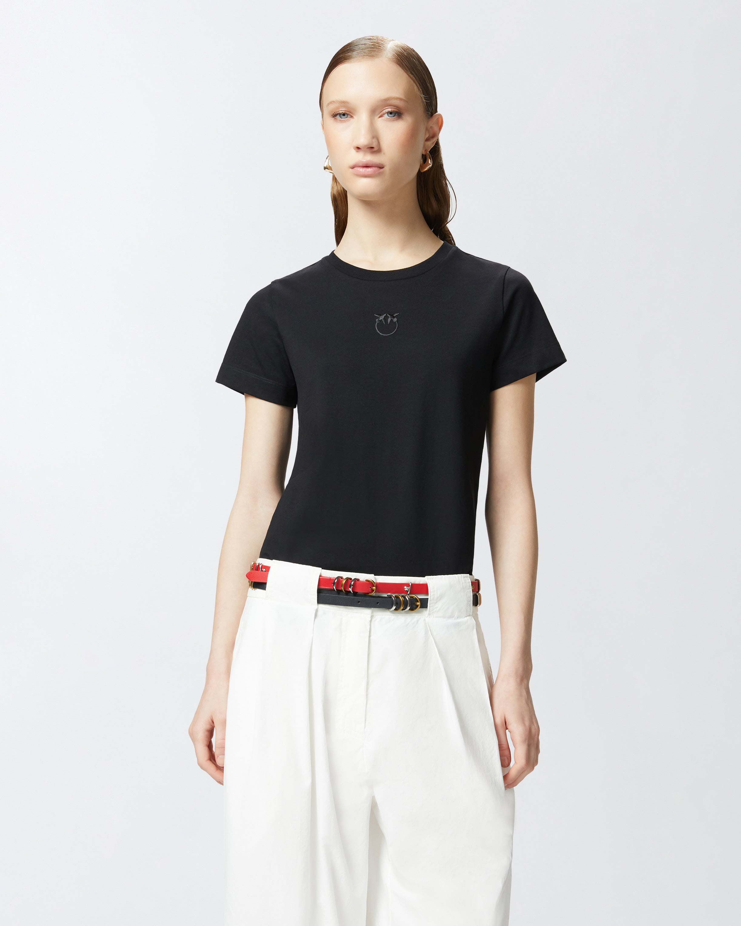 Women's short-sleeved T-shirt in cotton jersey with old-wash effect and embroidered-effect Love Birds logo on the front. This T-shirt is a real all-purpose piece with that authentic PINKO style. It's perfect to wear for any occasion, from formal to more sporty, bringing an iconic, feminine touch.