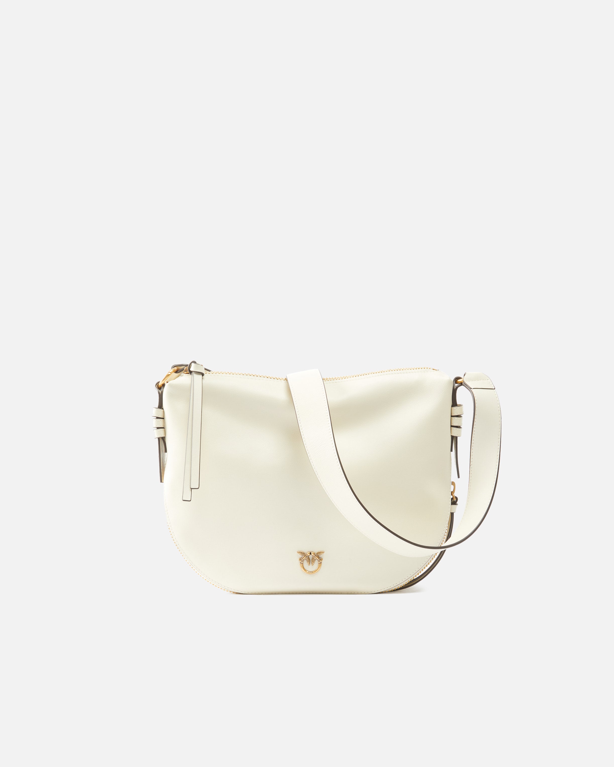 Small hobo shoulder bag in soft leather with zip fastening at the top and along the bottom edge. Featuring an adjustable leather shoulder strap for shoulder wear, this bag is very versatile and practical. The finishing touch is provided by the small Love Birds logo plaque symbolising the brand's singular style. Accessorise your daytime looks with this timeless piece: sometimes, the simplest option is the right one. Activate your PINKO bag: verify the authenticity of your product and access a personalised experience by scanning the Love Birds embroidery on the back of the bag with your smartphone!