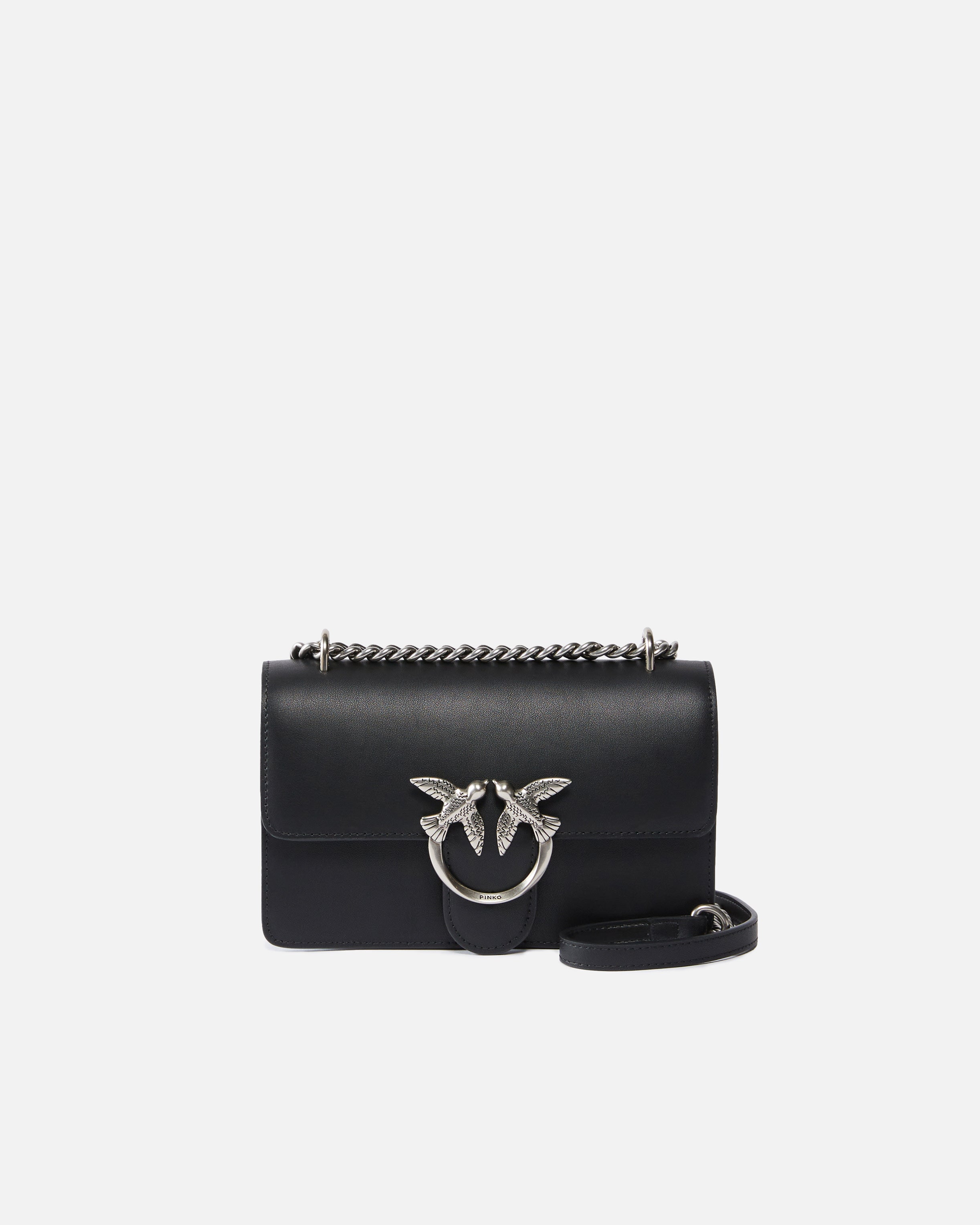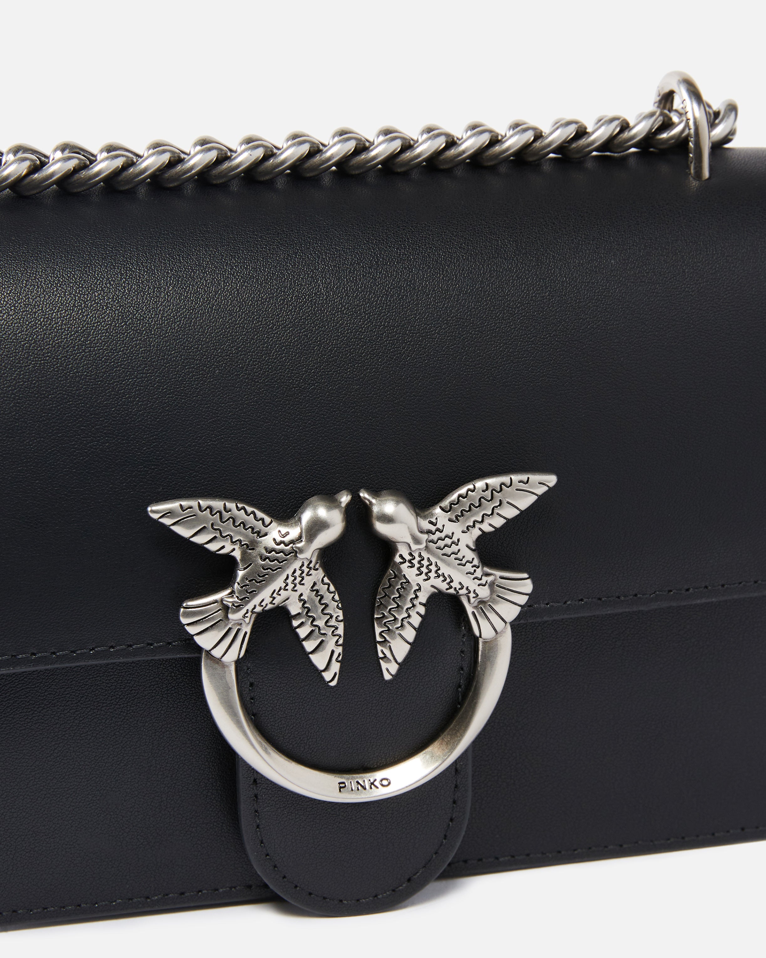 Mini Love Bag One in soft, silky leather. The fastening is embellished with the iconic metal Love Birds Diamond Cut buckle. The accessory boasts a suede microfibre-lined interior, complete with a zipped centre divider pocket and leather slip pocket. The shoulder strap combines the classic round-link chain with a practical, adjustable leather shoulder pad.