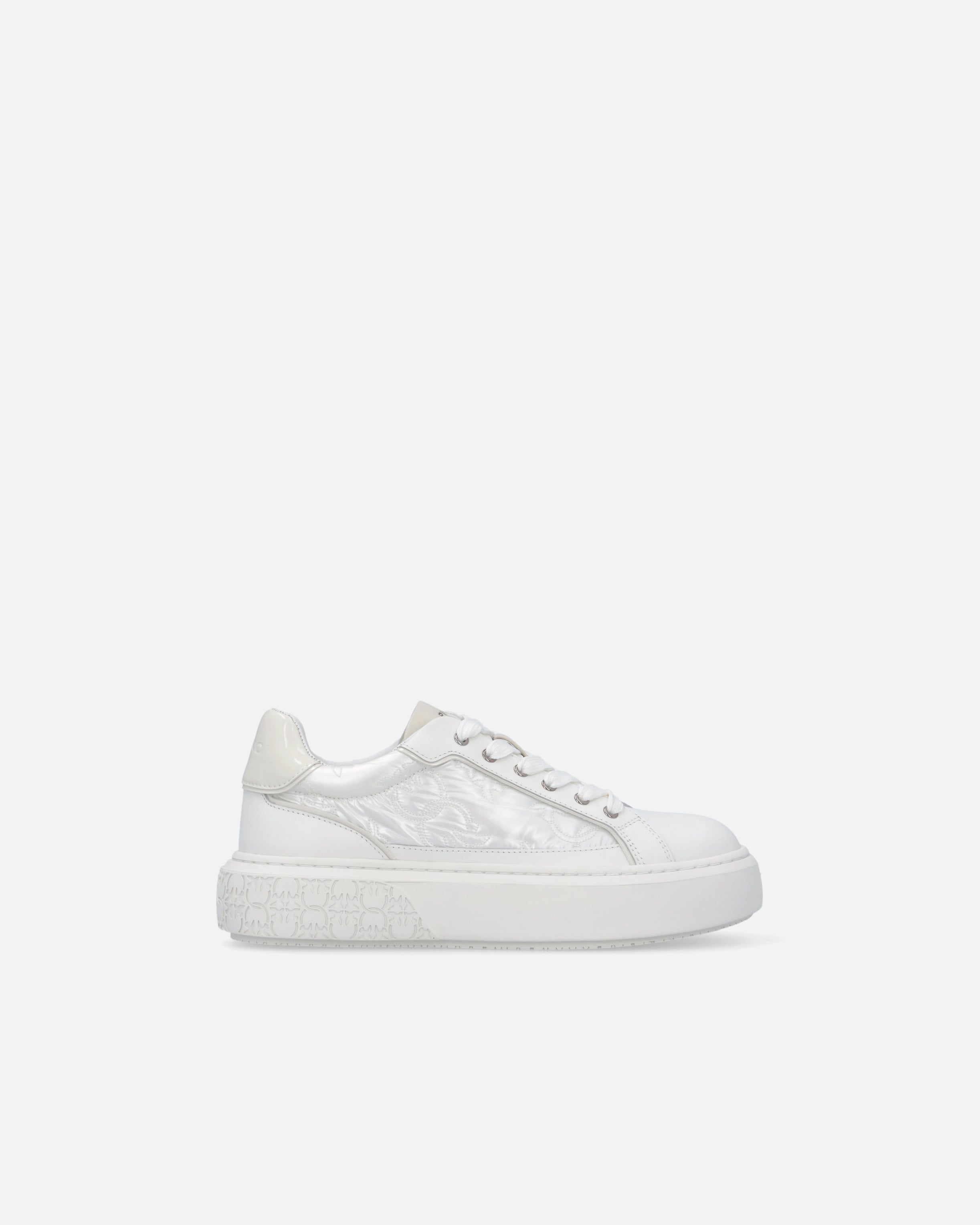 Lace-up sporty shoes in smooth leather and glossy fabric. The PINKO logo lettering adorns the heel, while a topstitched all-over Love Birds logo detail appears on the sides of the sneakers. The 4.5 cm-high chunky sole features a tonal insert on the back with an embossed all-over Love Birds logo detail and a logo-branded outsole for an extra custom touch. This shoe is destined to become a go-to for your casual looks and beyond, don't you think?