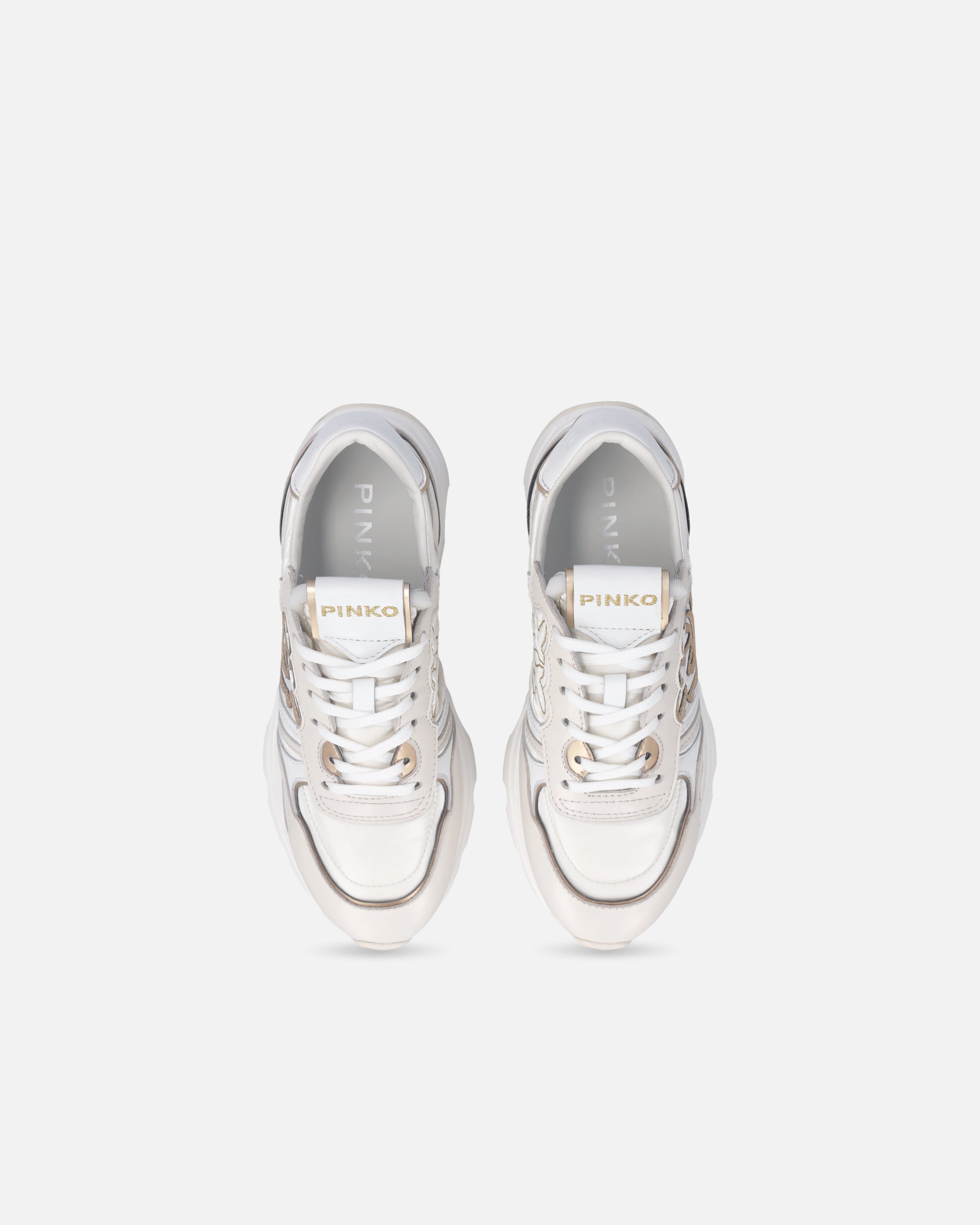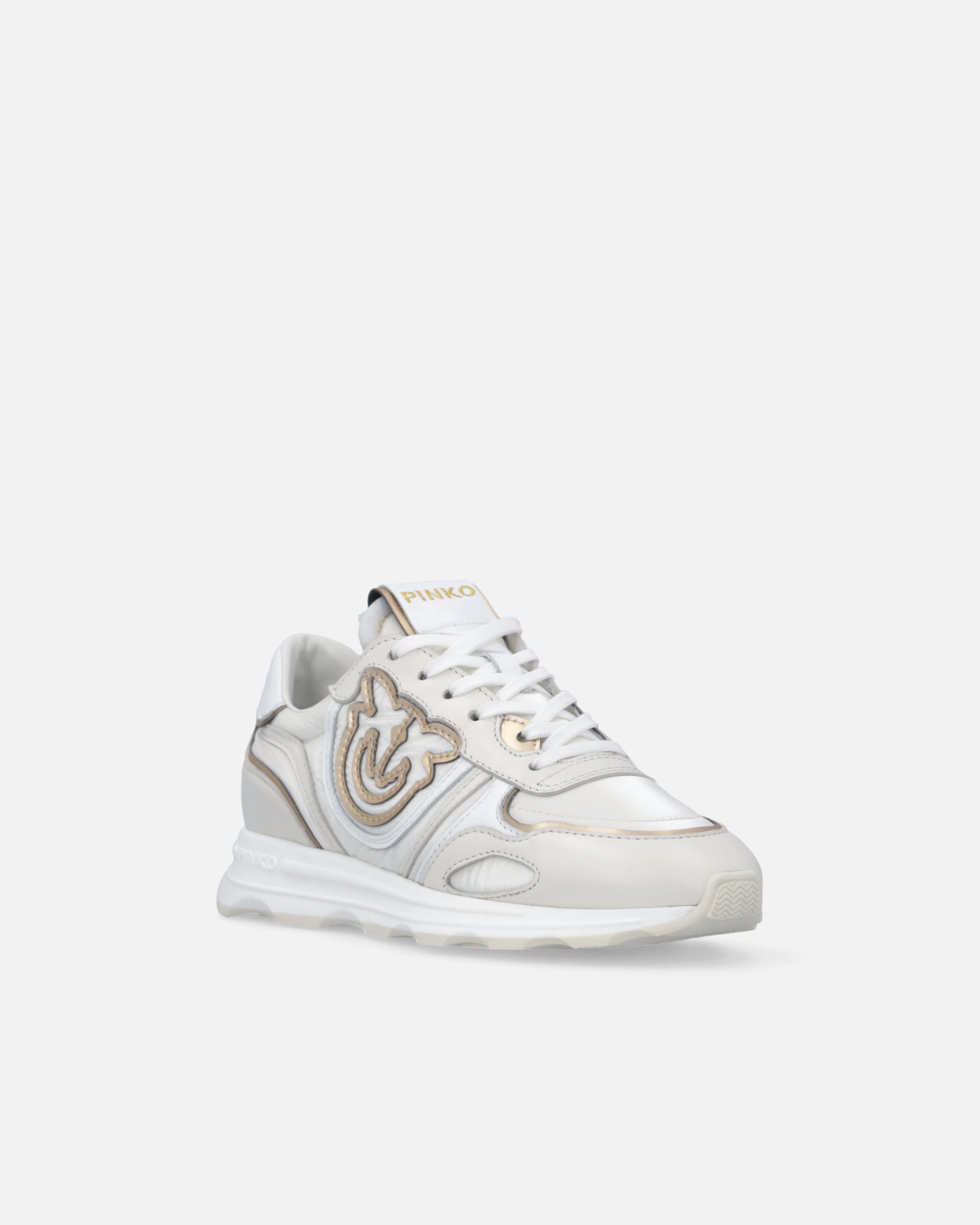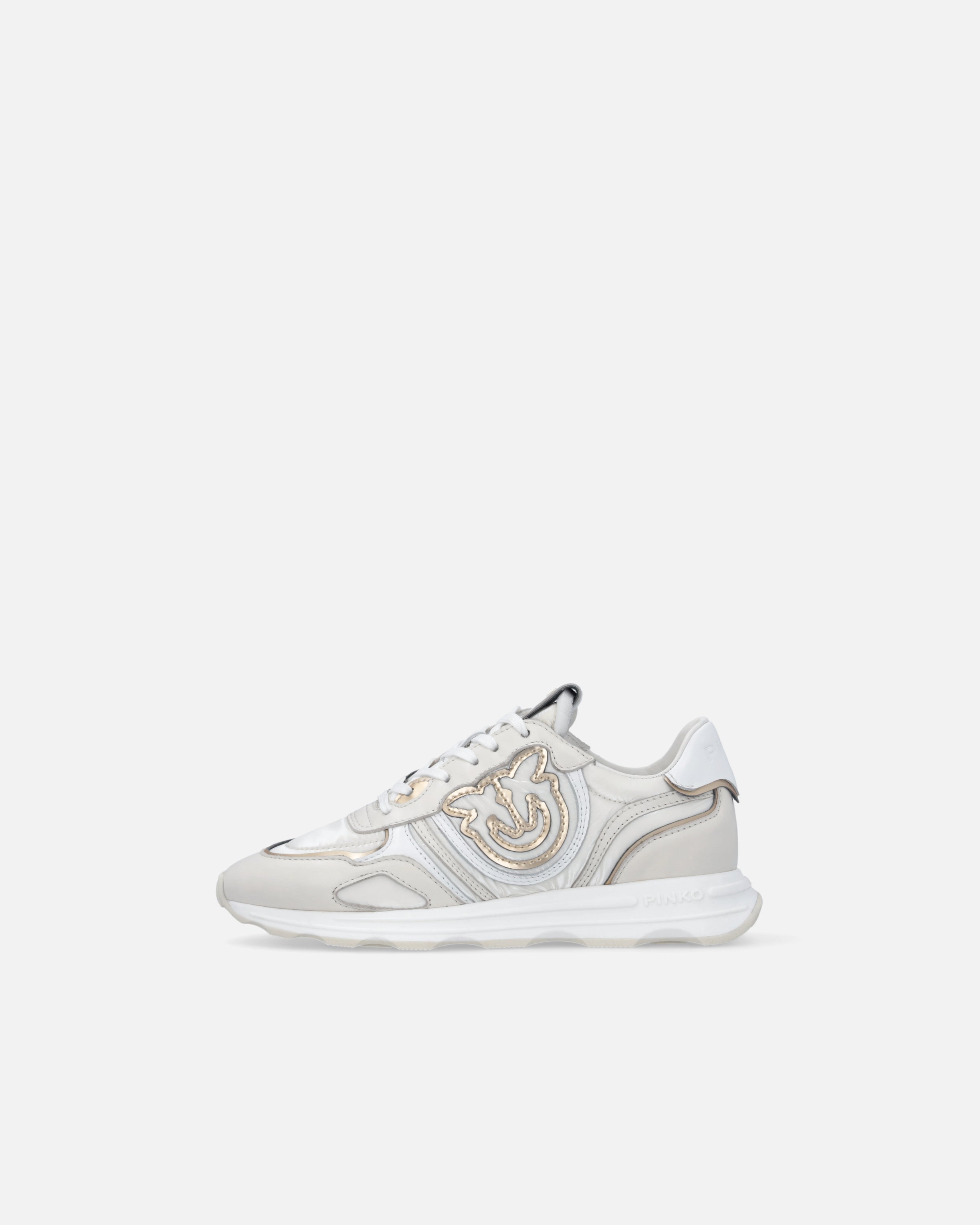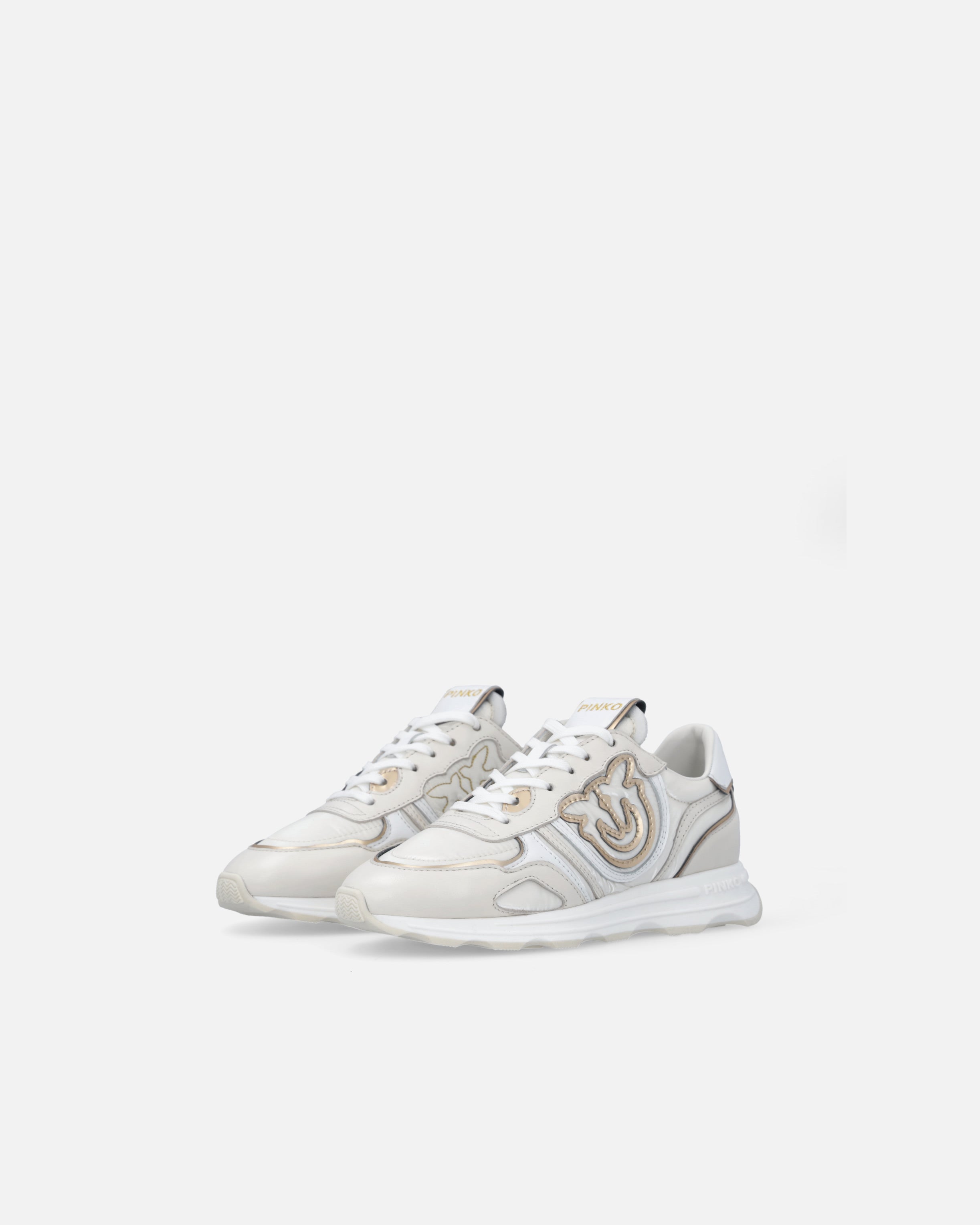 Lace-up sporty shoes in smooth leather and fabric. The upper, in contrasting colours and made from a variety of materials, is dotted with inserts that enhance the model with the elegance that has always set the brand apart. The PINKO logo lettering adorns the heel, while a raised Love Birds logo appears on the sides of the sneakers. The 3.5 cm-high sole features a logo-branded outsole. This pair is destined to become a go-to for your casual daytime looks, don't you think?