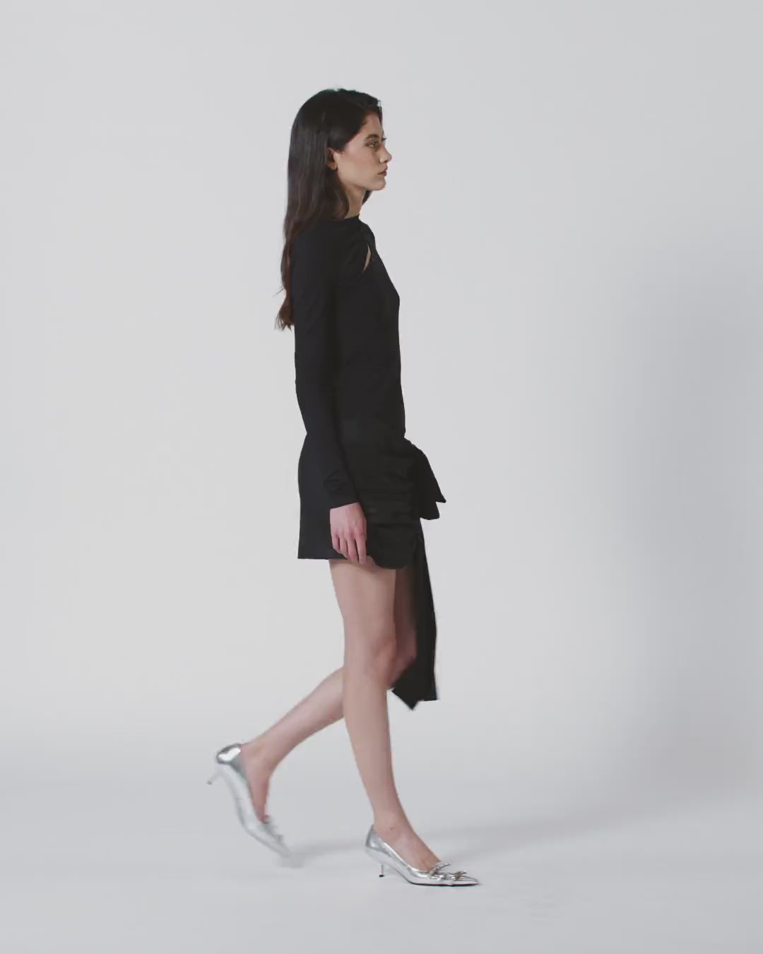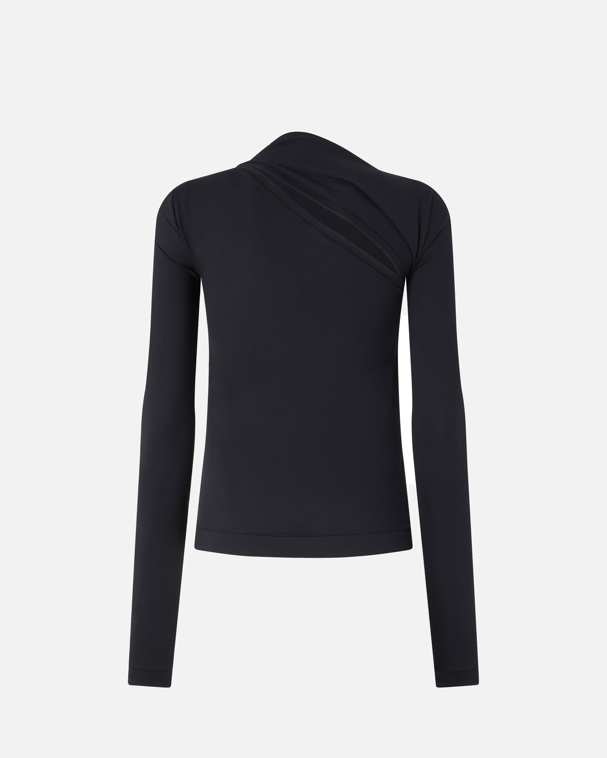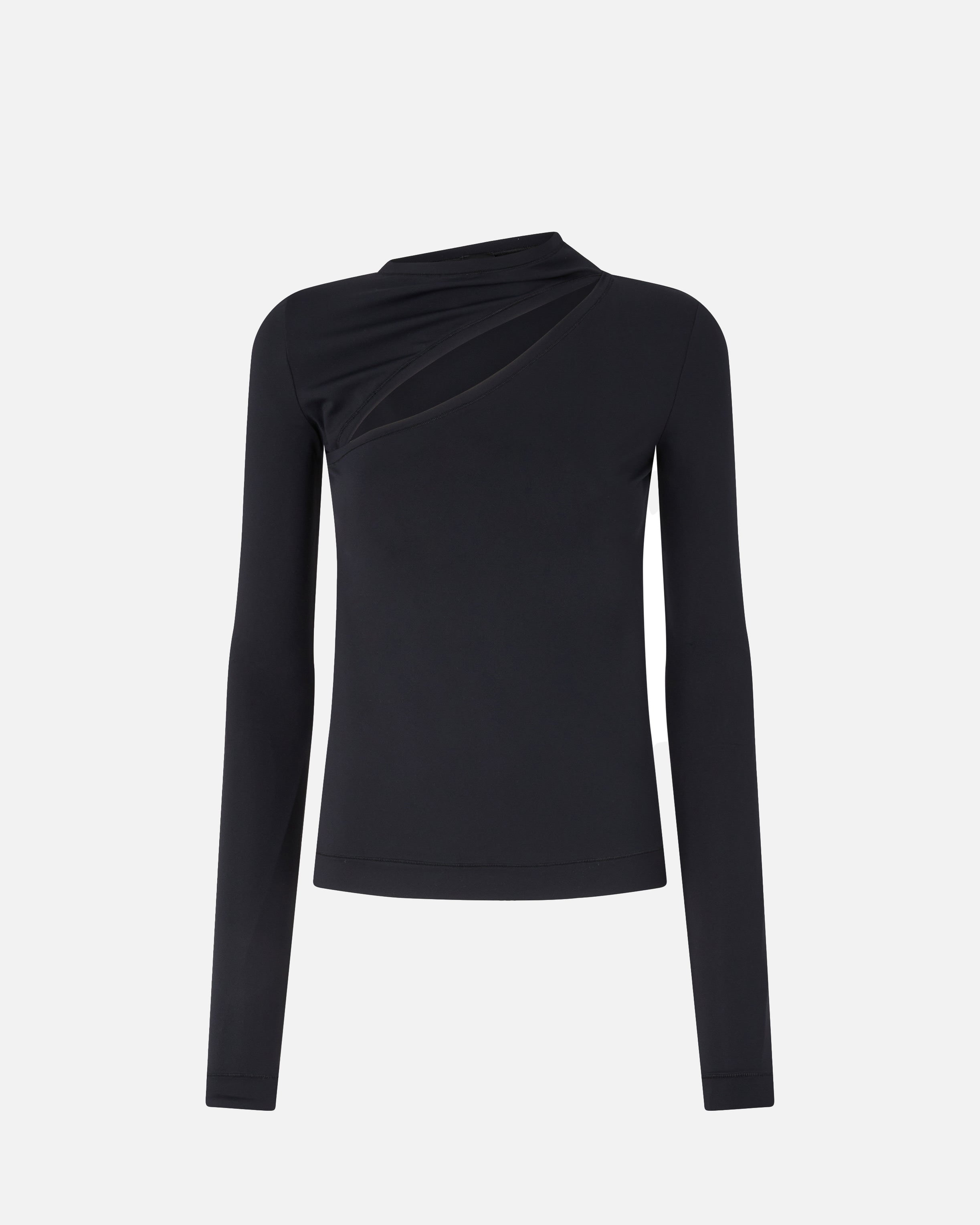 Long-sleeved sweater in bonded, run-resistant stretch fabric that feels like a second skin when worn. The slim fit of the garment makes it highly feminine and sensual, but the most eye-catching detail is the simple yet striking slanted cut-out on the chest. This clean, versatile and refined piece can be worn with a pair of jeans for a date or after-work drinks.