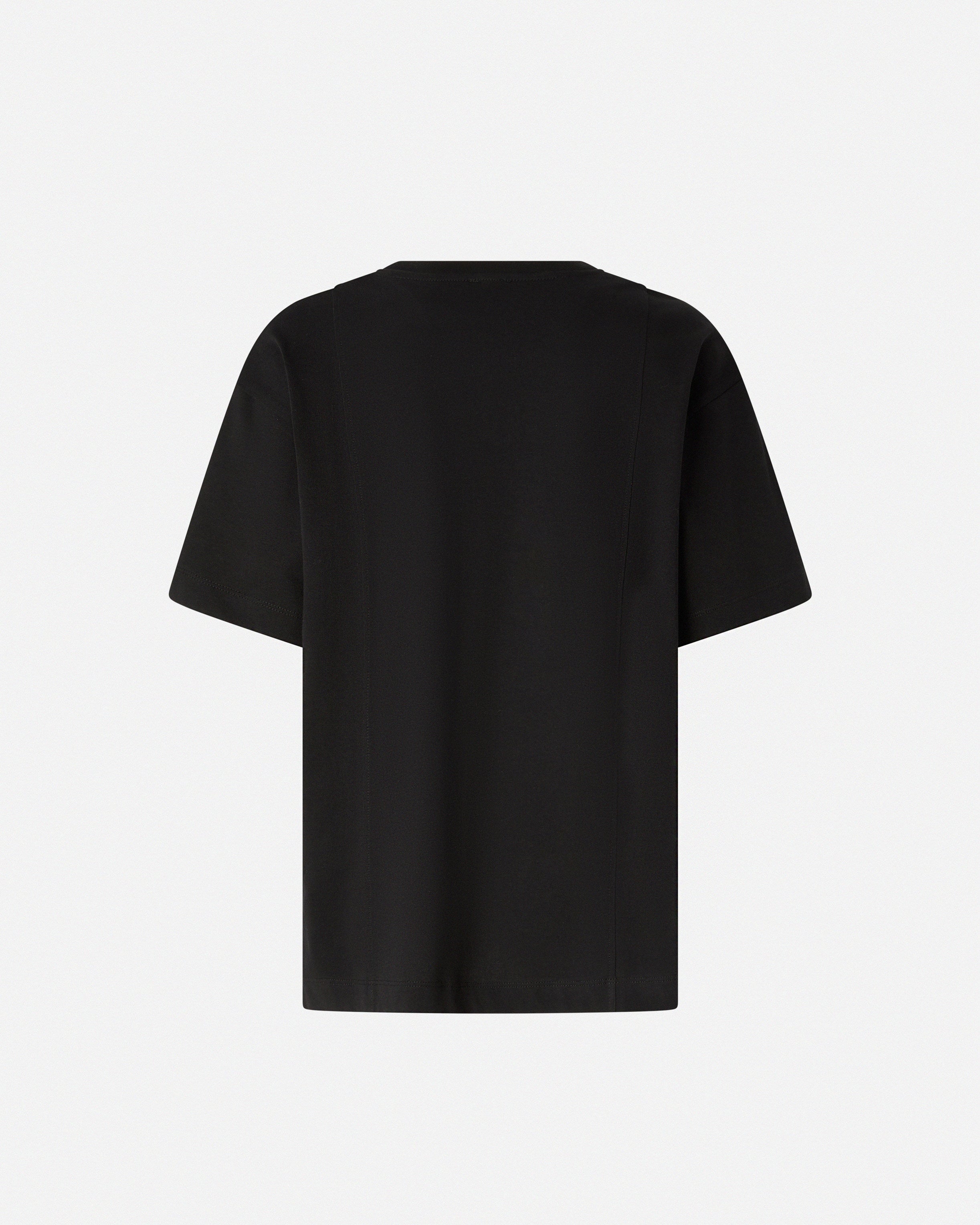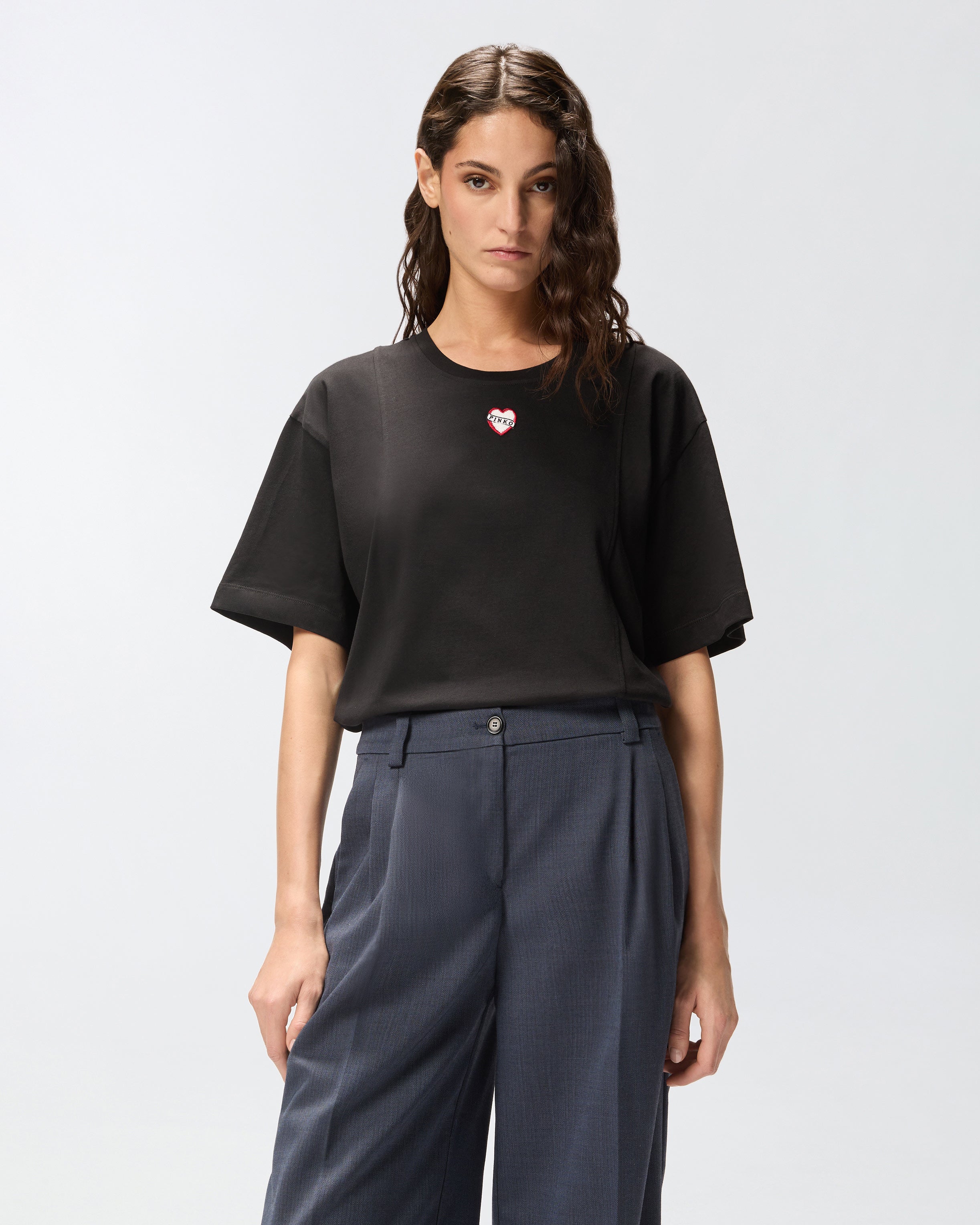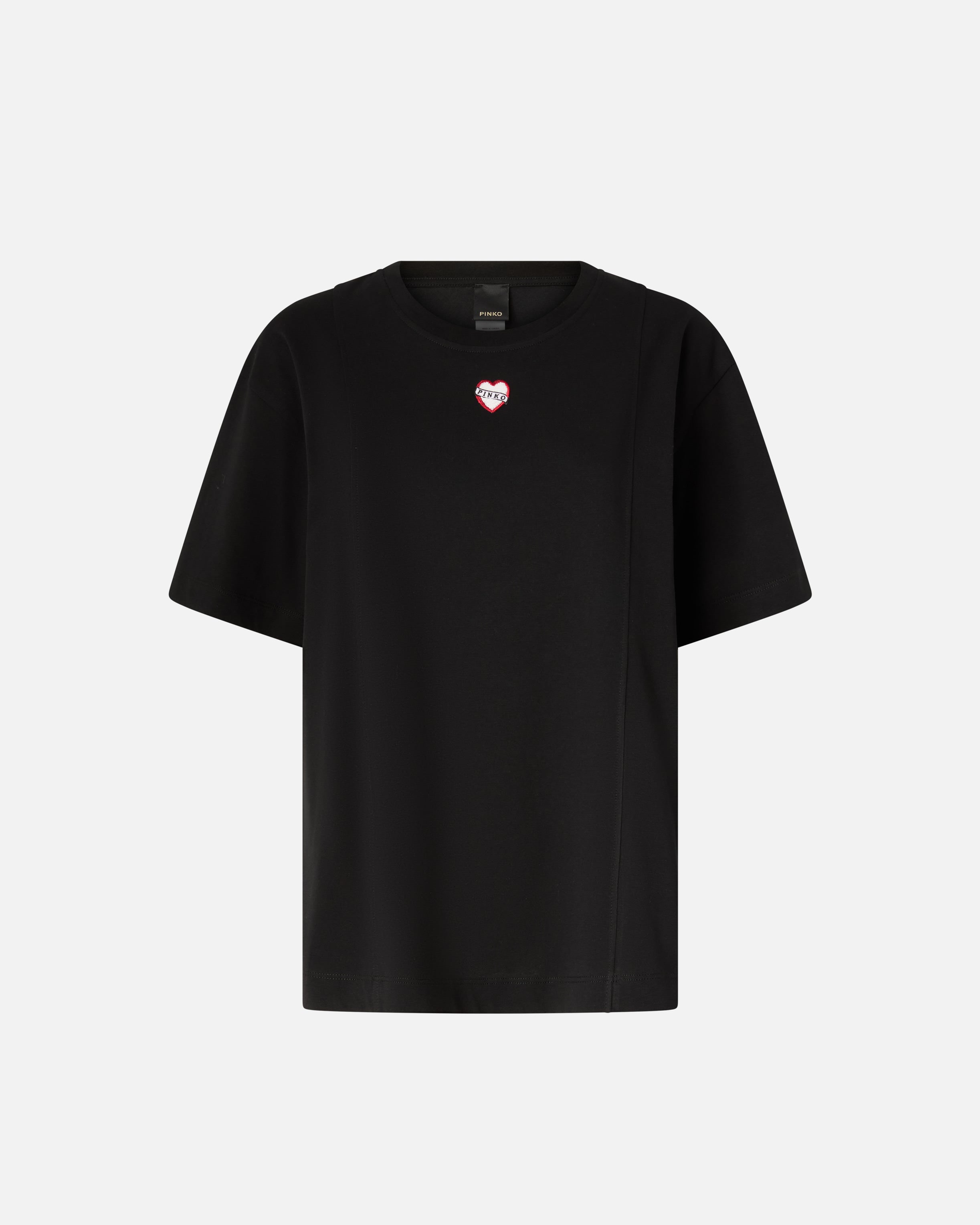 Short-sleeved T-shirt with rib-knit crew neck made from pure cotton jersey. The front features heart embroidery with PINKO lettering logo. A versatile piece that is easy to wear with a pair of jeans or layer under a jacket for a casual look.