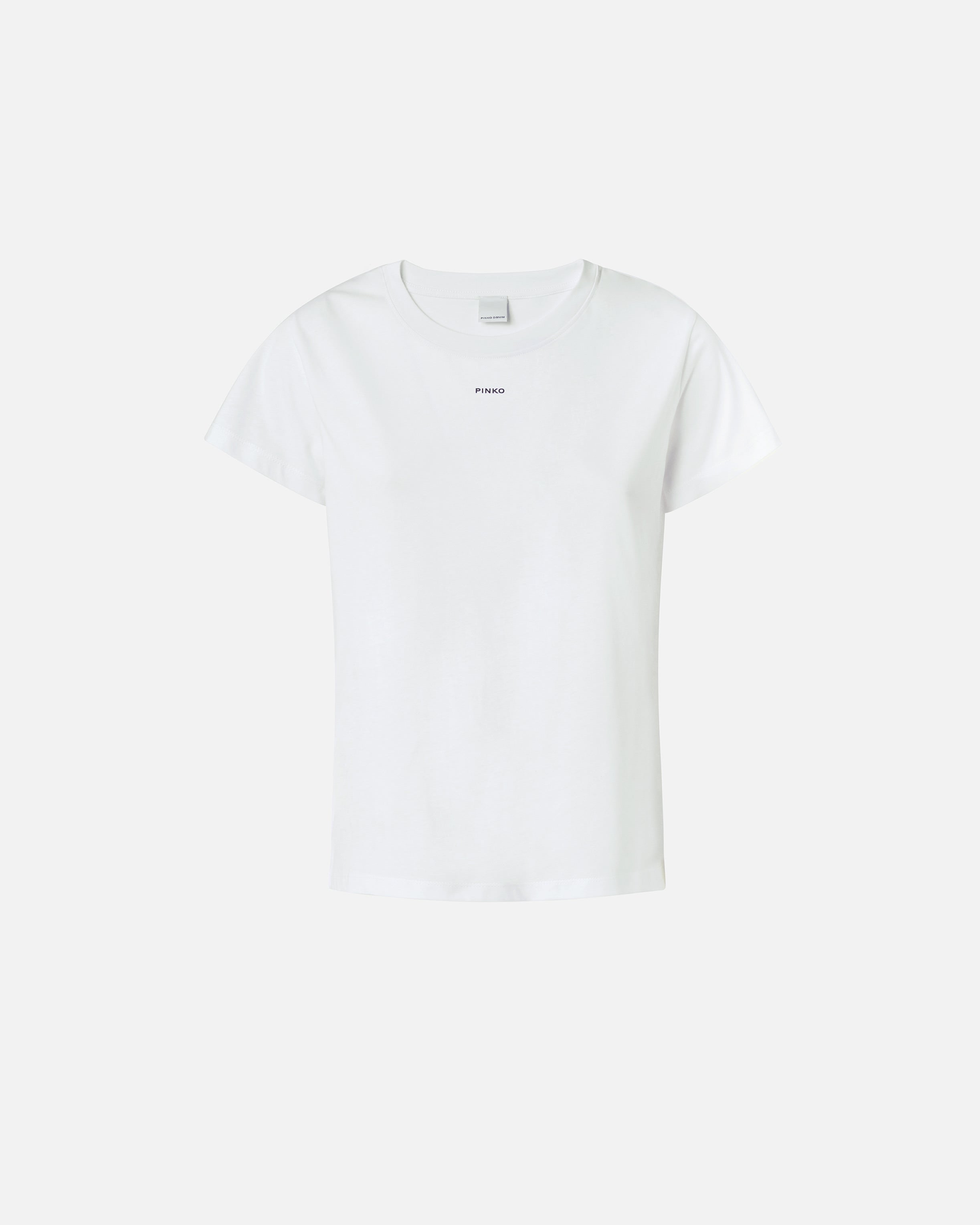 Short-sleeved T-shirt in cotton jersey with old wash treatment personalised with central PINKO mini logo print on front.