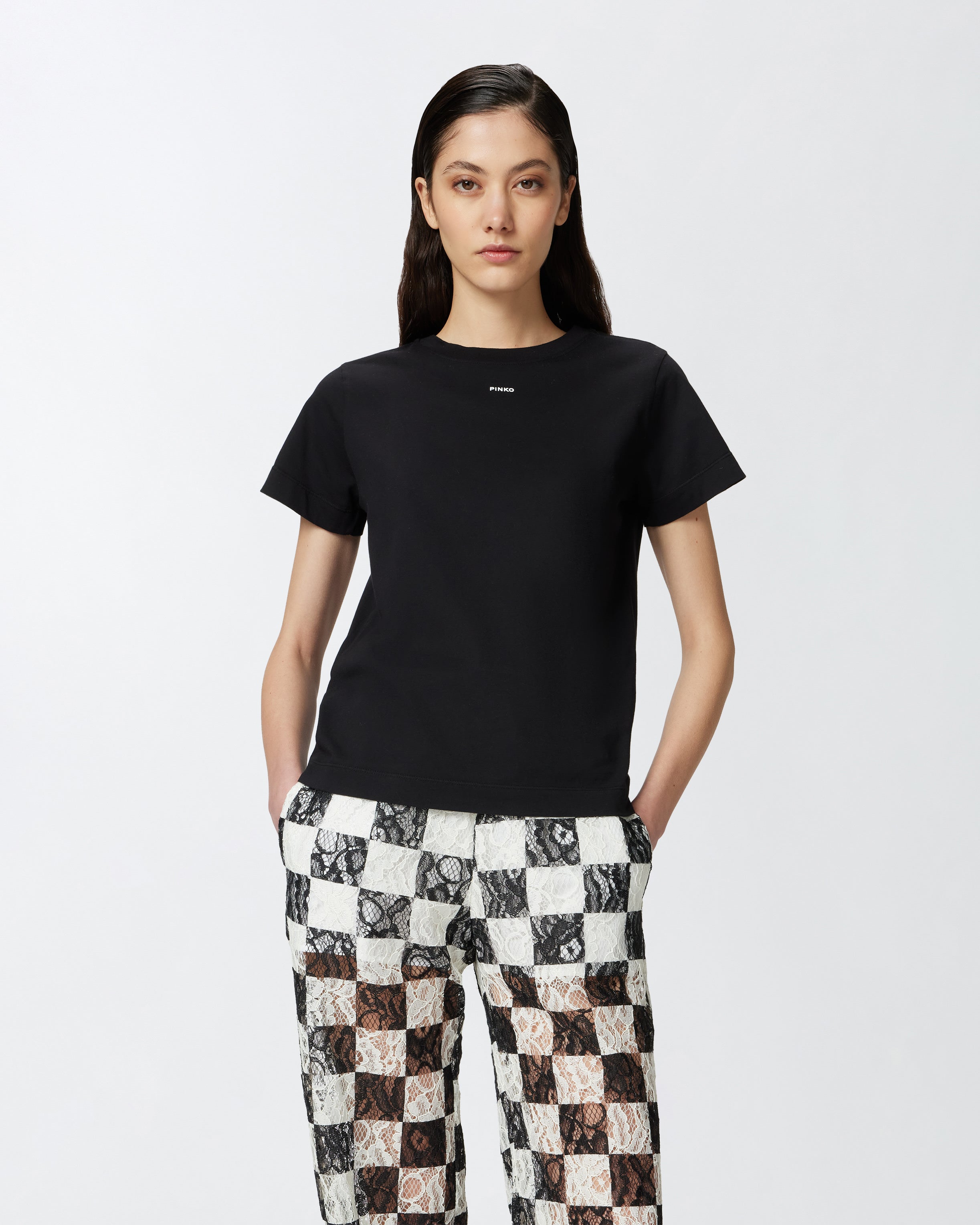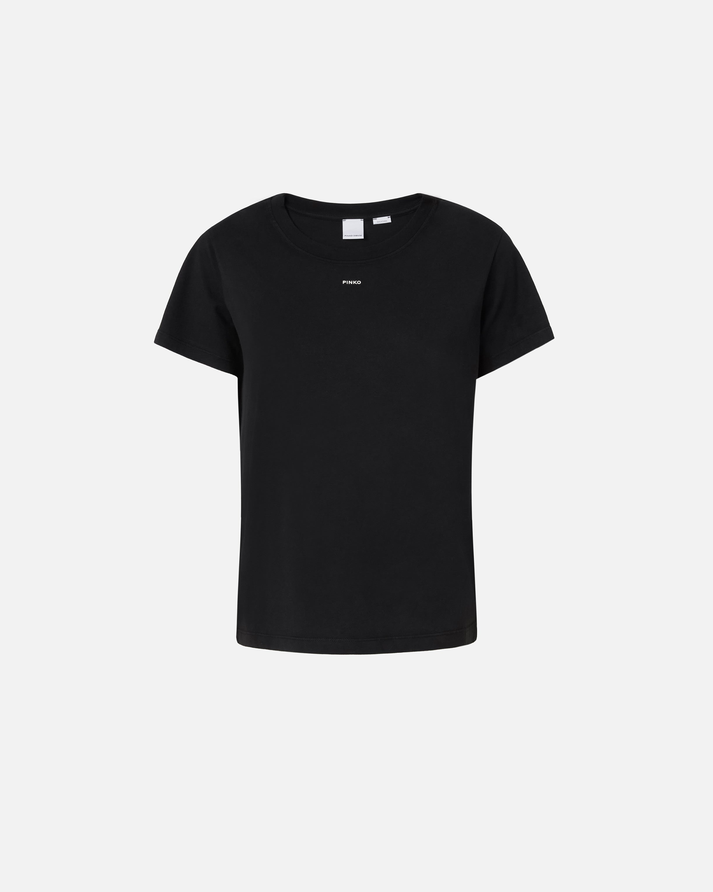 Short-sleeved T-shirt in cotton jersey with old wash treatment personalised with central PINKO mini logo print on front.