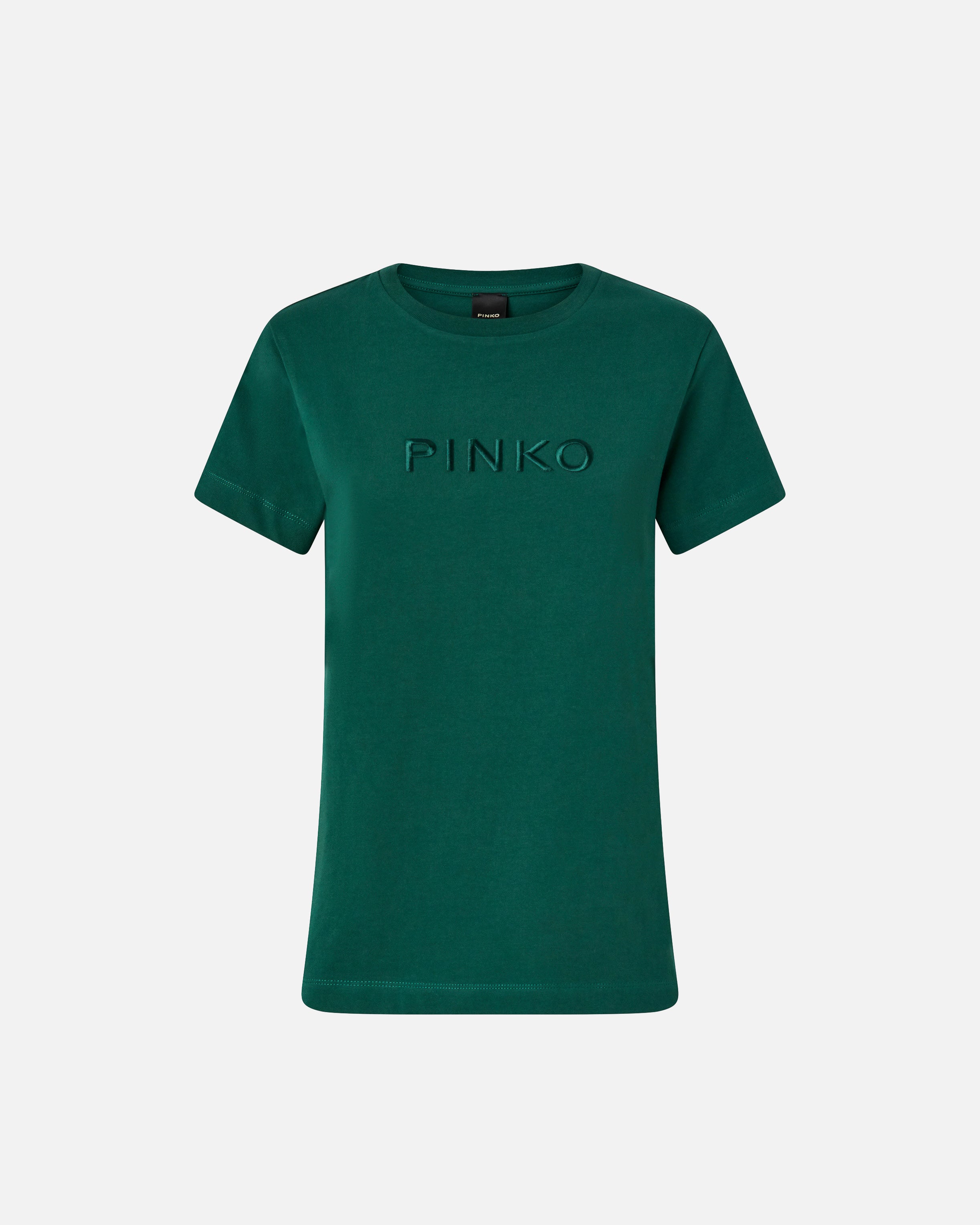 Slightly slim-fitting T-shirt in cotton jersey, with short sleeves and embroidered PINKO logo on the front. Make any outfit extra elegant and feminine with this top, which is perfect to wear under a jacket, paired with either tailored trousers or even a pair of special jeans.