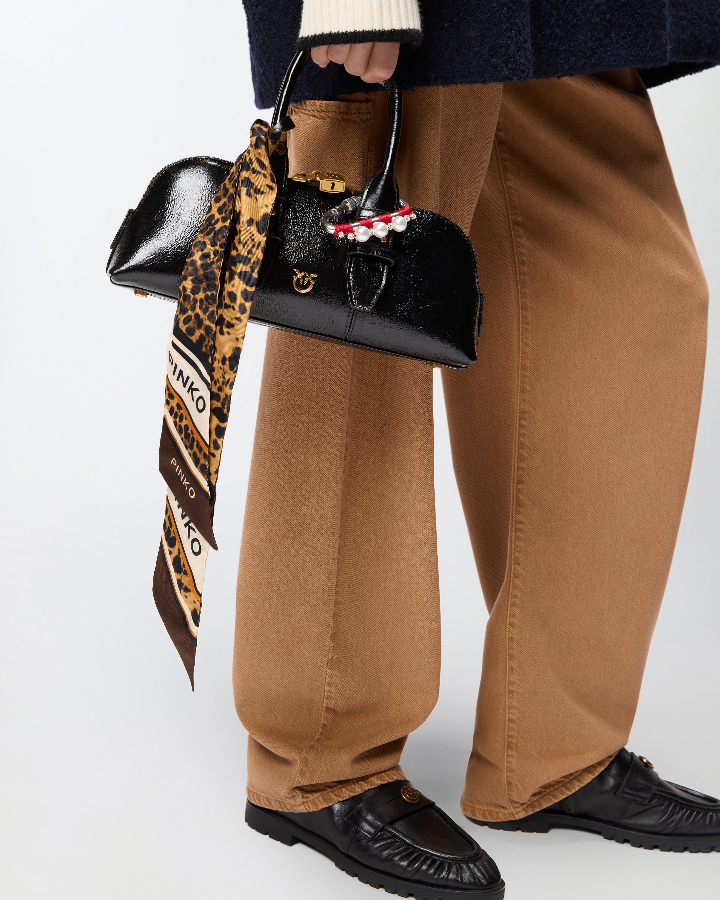 Twilly scarf in fine silk-blend twill with bold leopard print in warm, natural tones. Long and slender in shape, this piece is embellished with repeated PINKO logo lettering on the ends, whose distinctive graphic effect works perfectly with the wild charm of the animal motif. This accessory lends itself to various uses: wear it around the neck like a choker to give more minimalist looks a twist or tie it to the handle of a bag to give everyday outfits added character.