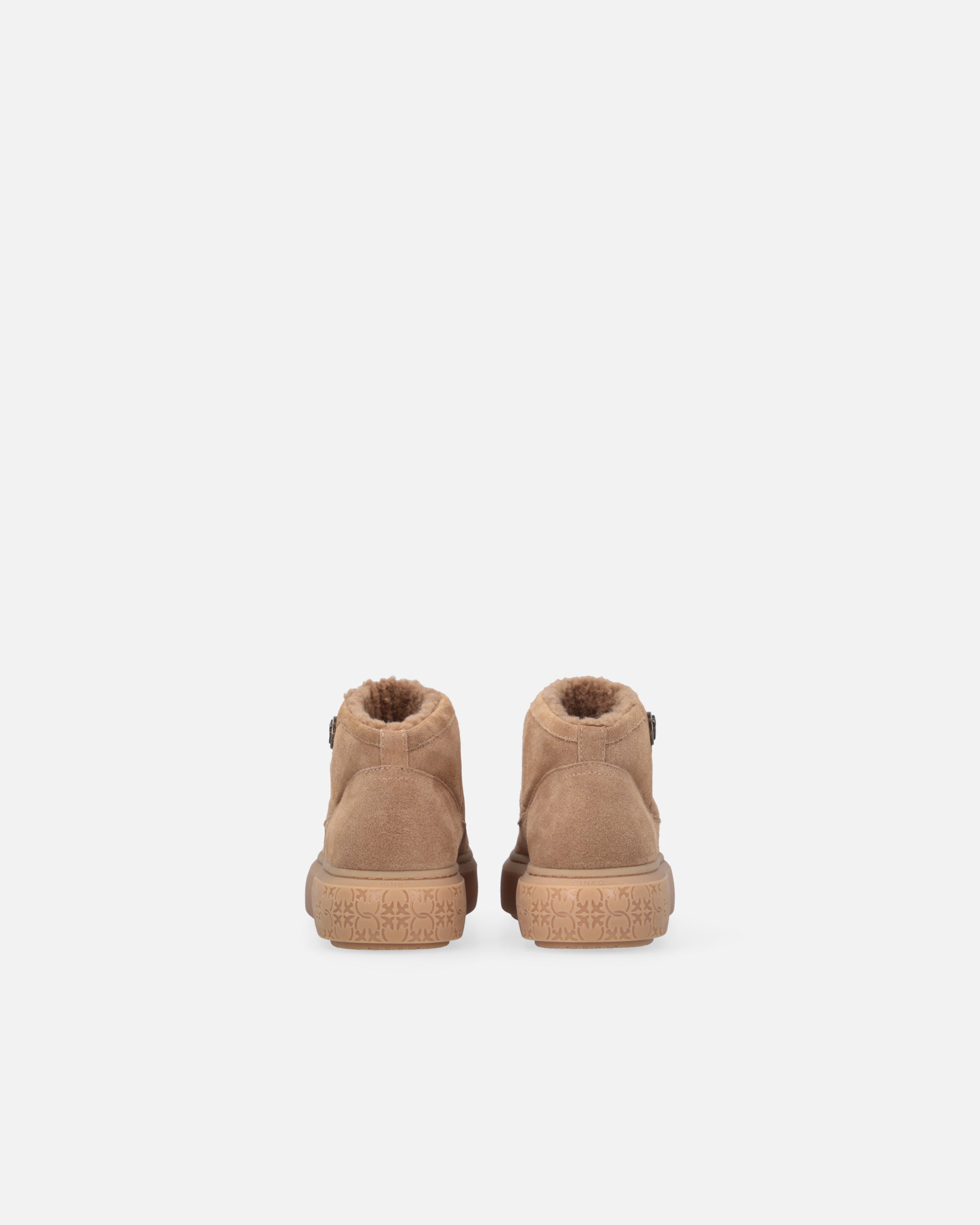 Suede winter boots with very soft and warm interior. The low leg shaft, which makes them easier to put them on, features a small plaque with the Love Birds logo. The 4.5 cm-high chunky sole features a tonal insert on the back with an embossed all-over Love Birds logo detail on the rubber and a logo-branded outsole for an extra custom touch. Pamper your feet with these shoes, ideal for casual yet recognisable looks.
